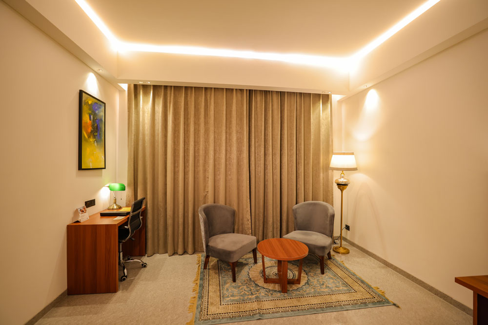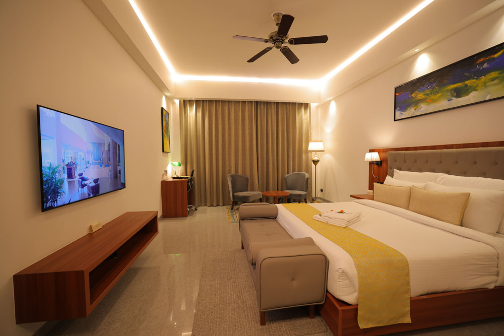 With a king-size bed as the focal point and a dedicated work corner for your convenience, our Premium Rooms perfectly balance comfort and functionality. Additional amenities include a safety locker, mini fridge, 24/7 internet connectivity, and more, ensuring a comfortable and seamless stay.